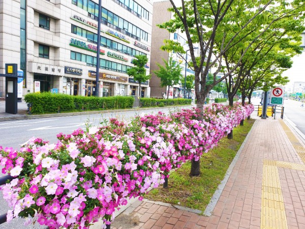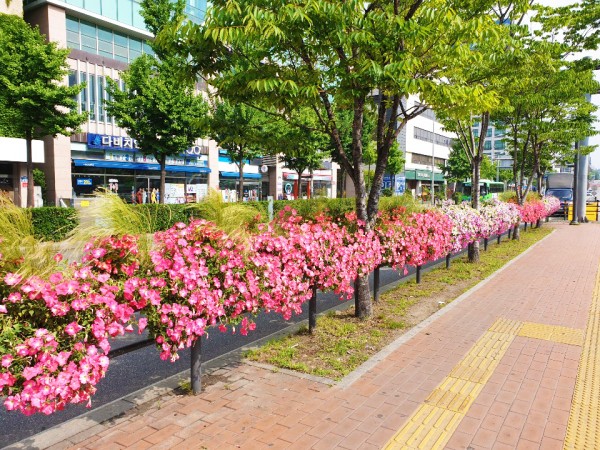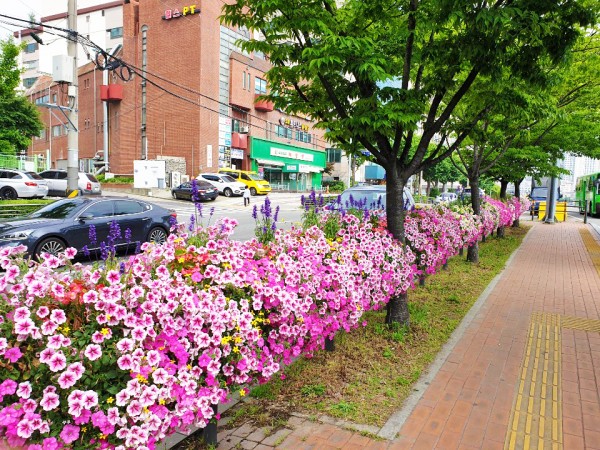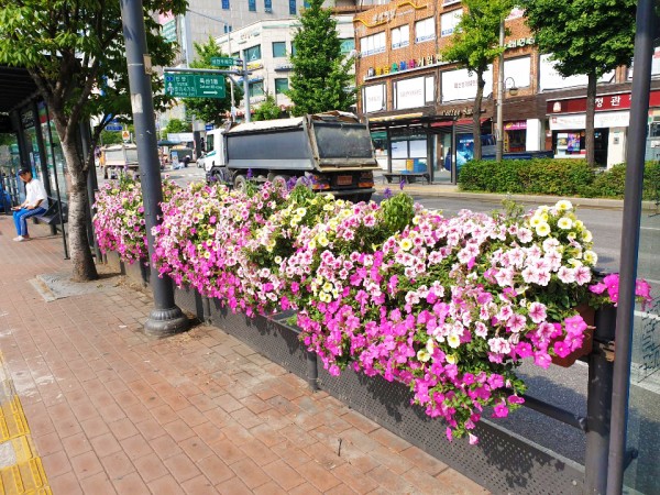 2019년 상반기 금천구 버스전용차로에 난간걸이화분을 설치하였습니다.