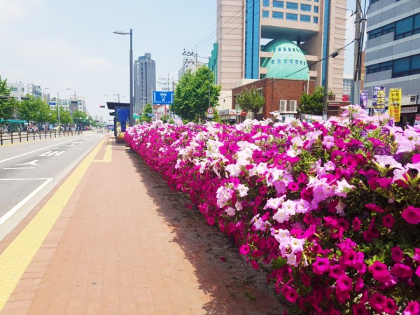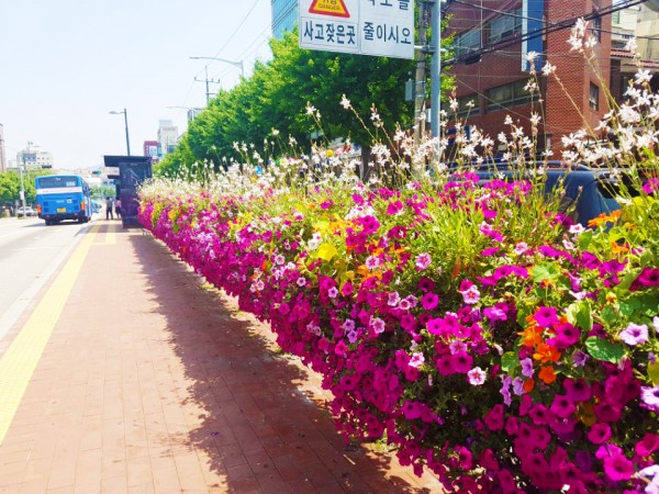 2018년 상반기 도봉구 버스정류장에 난간걸이화분을 설치하였습니다.