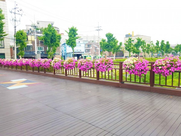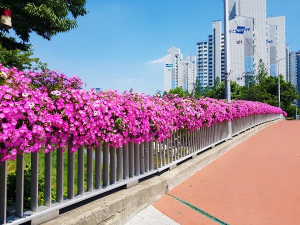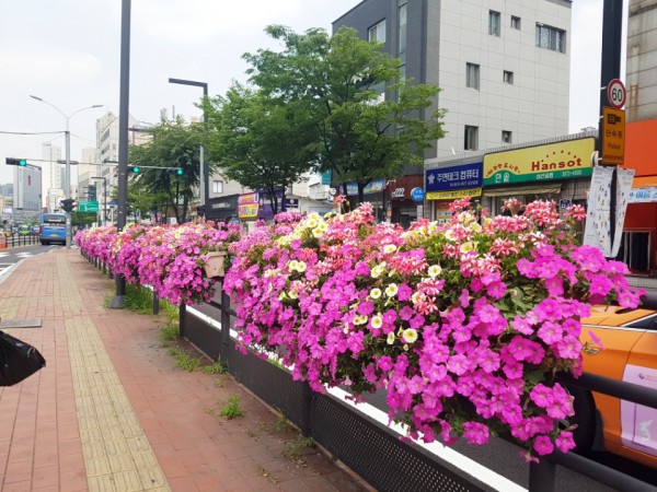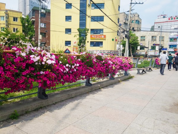 2018년 상반기 성북구 버스정류장과 하늘다리와 바람마당교, 석계교에 난간걸이화분을 설치하였습니다.