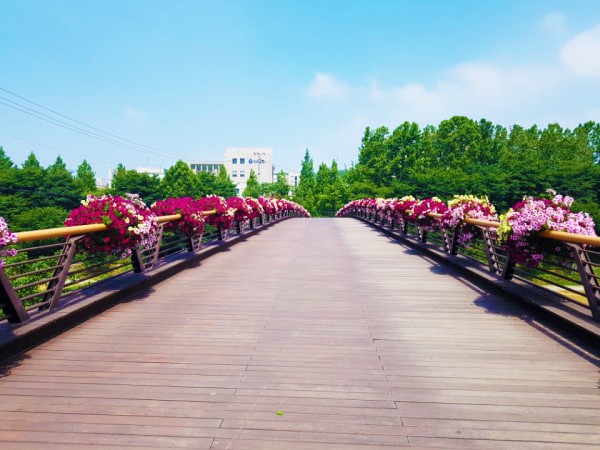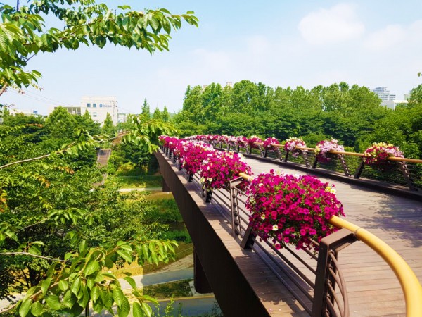 2018년 상반기 강남구 육교에 난간걸이화분을 설치하였습니다.