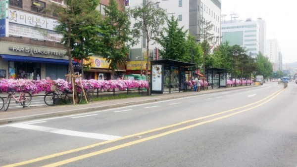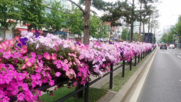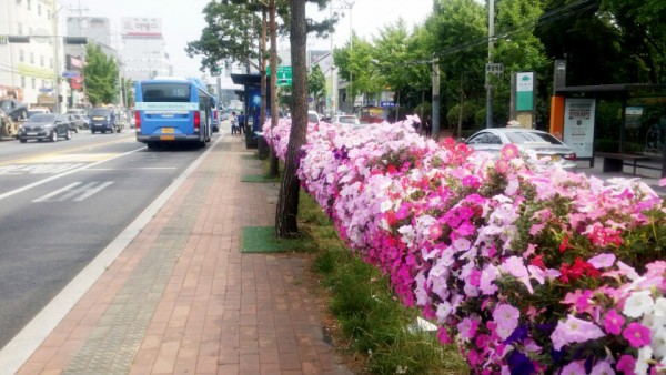 2016년 상반기 버스전용차로에 사각 난간걸이화분을 설치하였습니다.