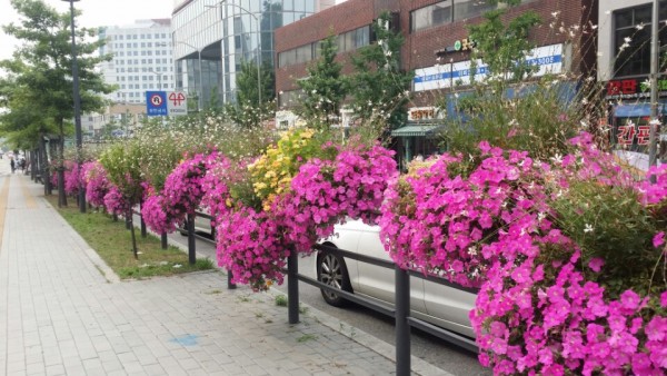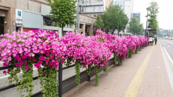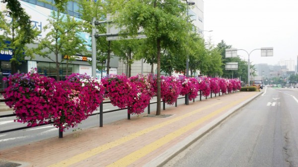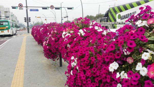 2016년 상반기 강서구청 버스전용차로에 사각난간걸이화분을 설치하였습니다.