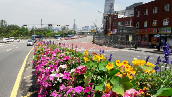 2016년 상반기 동작구청관할 상도터널 한강 및 상도역 방향 입구 중앙차로에 난간걸이화분을 설치하였습니다.
