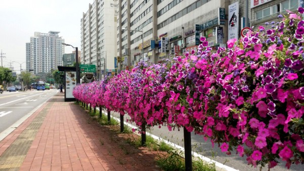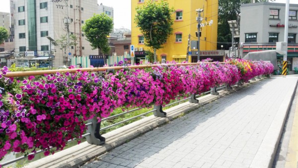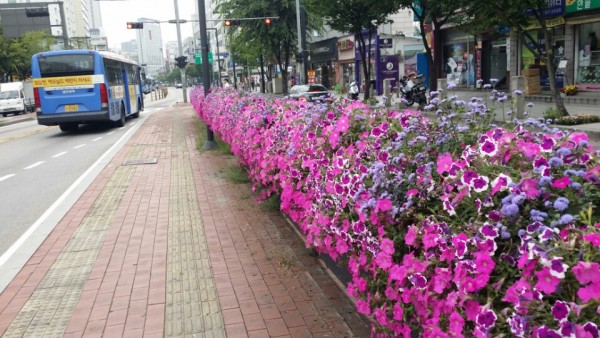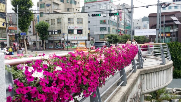 2016년 상반기 성북구청관할 버스전용차로와 하늘다리, 바람마당교에 사각난간걸이화분을 설치하였습니다.