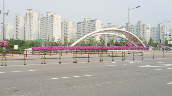 2015년 상반기 화성시종합운동장 난간걸이화분설치 > 전용차로난간걸이화분