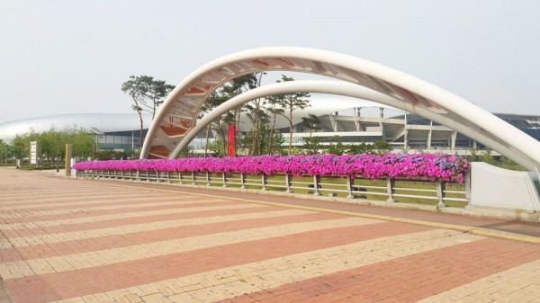2015년 상반기 화성종합운동장 주변 난간걸이화분을 설치하였습니다.