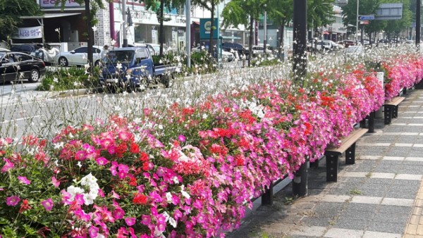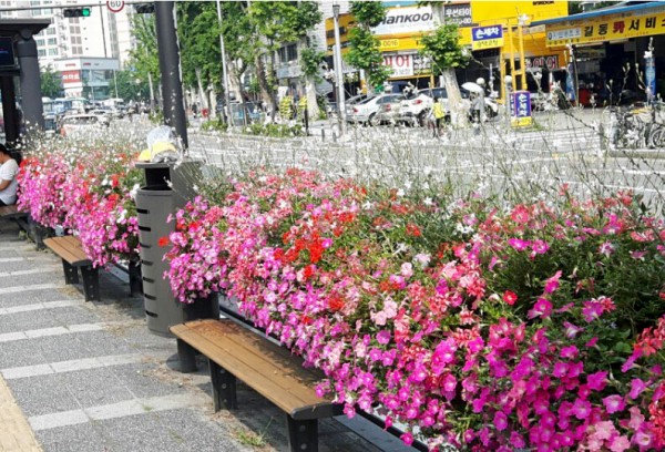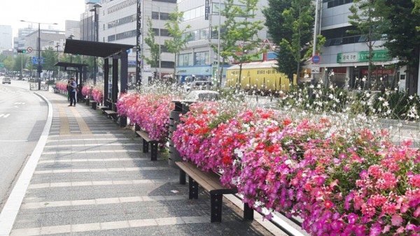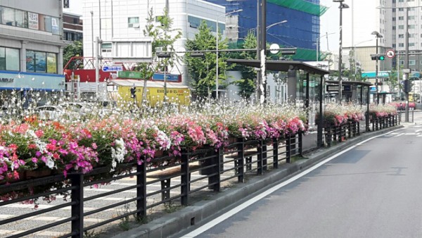 2016년 상반기 사각 버스 전용차로에 사각 난간걸이 화분을 설치하였습니다.