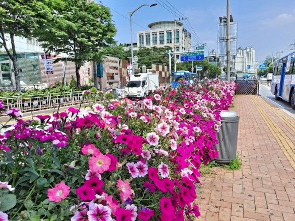 2021년 상반기 동대문구 난간걸이화분 설치 > 전용차로난간걸이화분