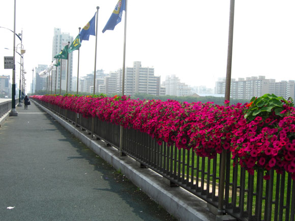 양천구청 앞 난간(첫번째 사진), 오목교 난간 화분(두번째 사진).