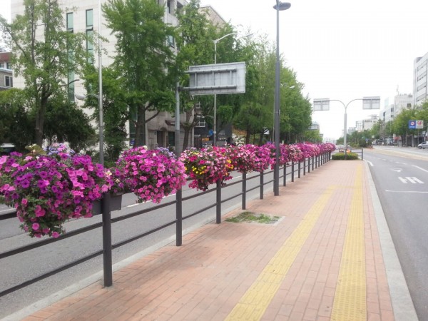 2014 상반기 강서구청 시공사례 > 전용차로난간걸이화분