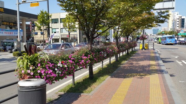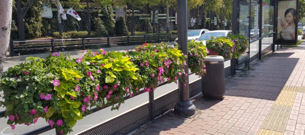 2014하반기 금천구청관할 버스전용차로에 난간걸이화분을 설치하였습니다.