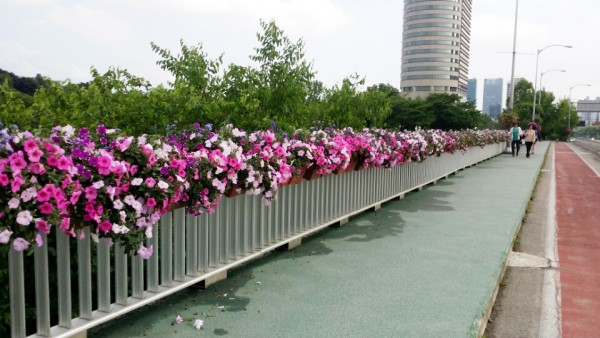 2016년 상반기 송파구청관할 성내교에 사각난간걸이화분을 설치하였습니다.
