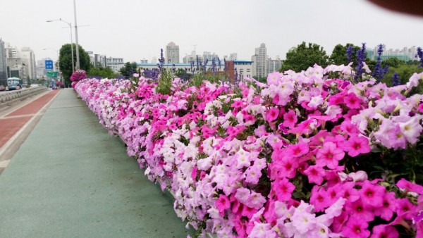 2016년 상반기 송파구 난간걸이화분 설치 > 전용차로난간걸이화분