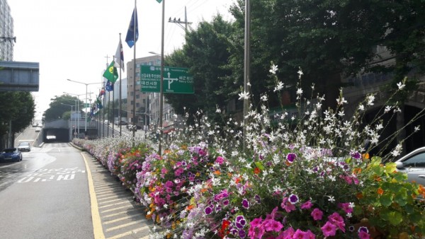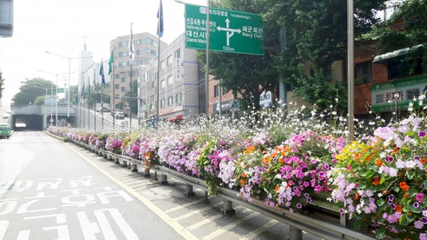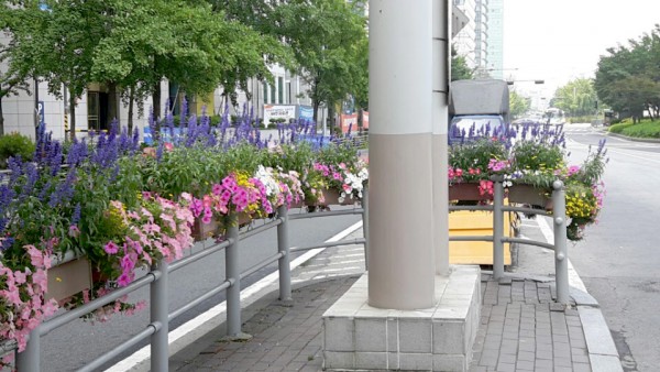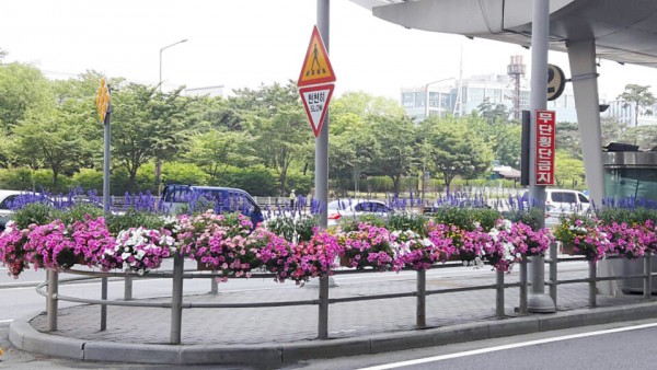 2016년 상반기 영등포구청관할 해군회관앞 중앙차로와 환승센터에 사각난간걸이화분을 설치하였습니다.