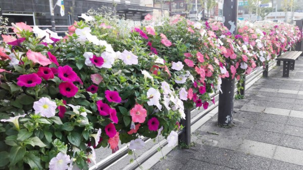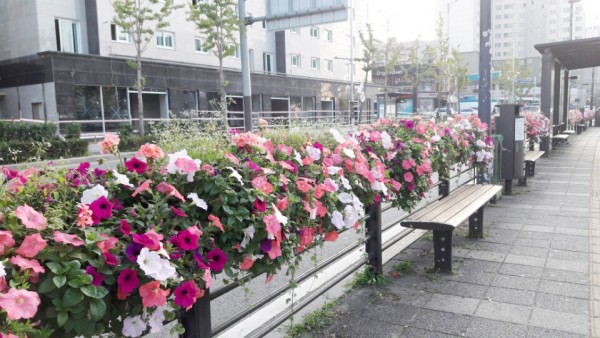 2016년 하반기 강동구청 관할 버스전용차로에 사각난간걸이화분을 설치하였습니다.