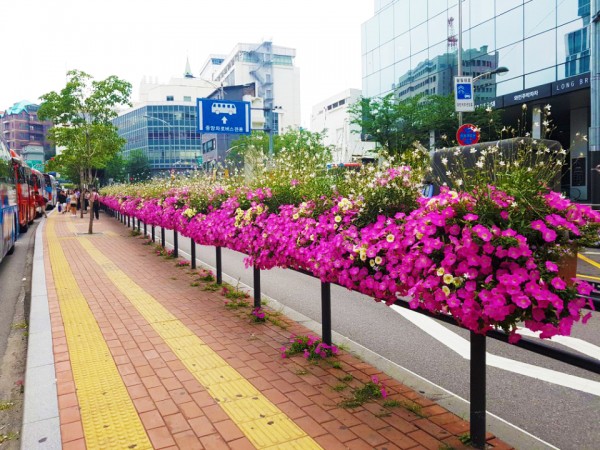 2018년 상반기 중구 버스정류장과 청구역에 난간걸이화분을 설치하였습니다.