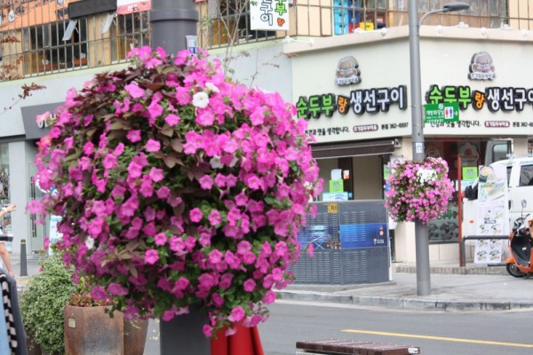 2014년 하반기 서대문구청관할  도로 가로등걸이화분을 설치하였습니다.
