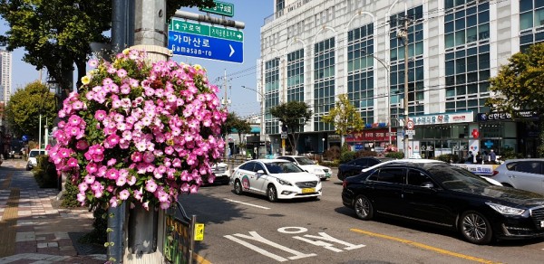 2020년 하반기 구로구에 가로등걸이화분을 설치하였습니다.