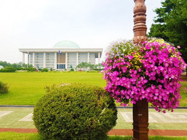 2018년 상반기 국회의사당에 가로등걸이화분을 설치하였습니다.