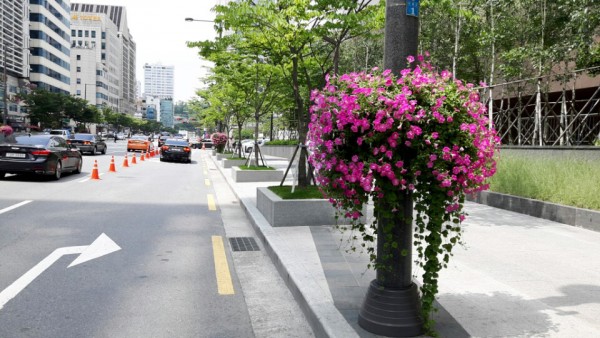 2016년 강남구청관할 영동대로,압구정로,아셈로,학동로에 가로등걸이화분을 설치하였습니다.
