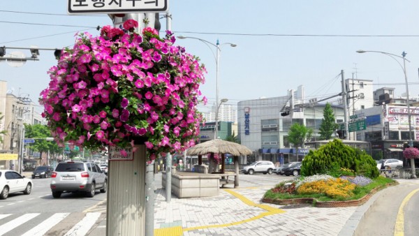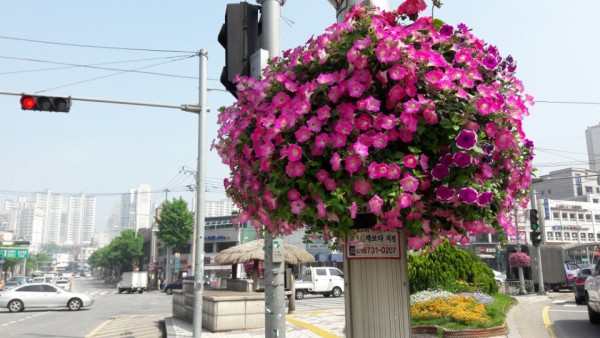 2016년 상반기 동작구청관할 대로변에 가로등걸이화분을 설치하였습니다.