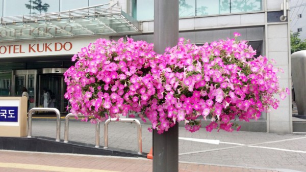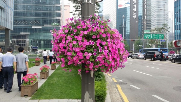 2016년 상반기 중구청관할 대로변에 가로등걸이화분과 꽃사각걸이화분을 설치하였습니다.
