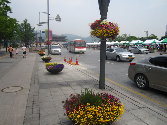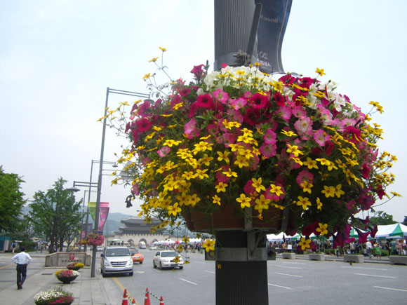 광화문 앞 세종로 가로등 화분.