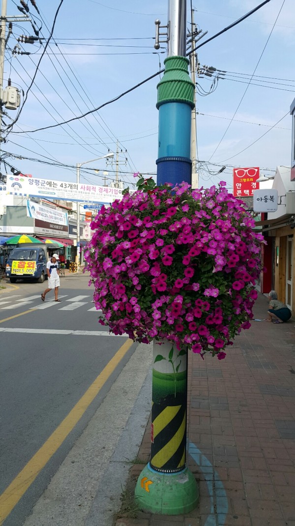 2015년 상반기 양평군청 관할 지평면 일대 가로등걸이화분을 설치하였습니다.