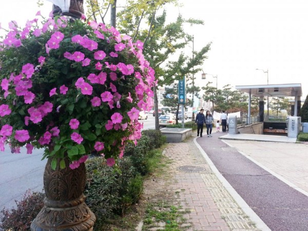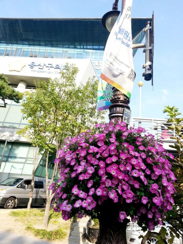 2015년 하반기 용산구청 관할 대로변에 가로등걸이화분을 설치하였습니다.