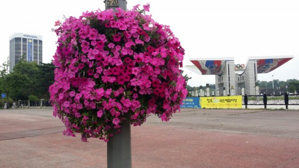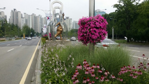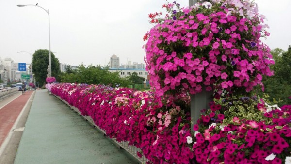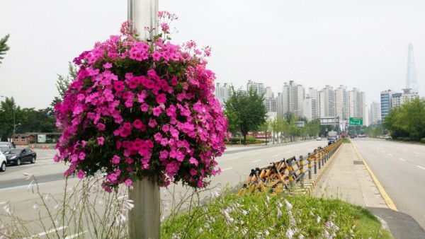 2016년 상반기 송파구청관할 대로변에 가로등걸이화분을 설치하였습니다.