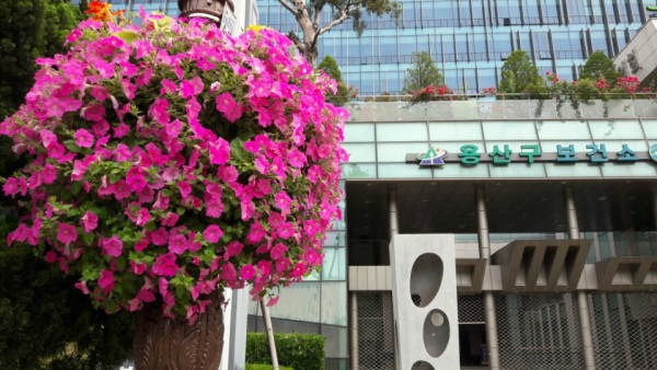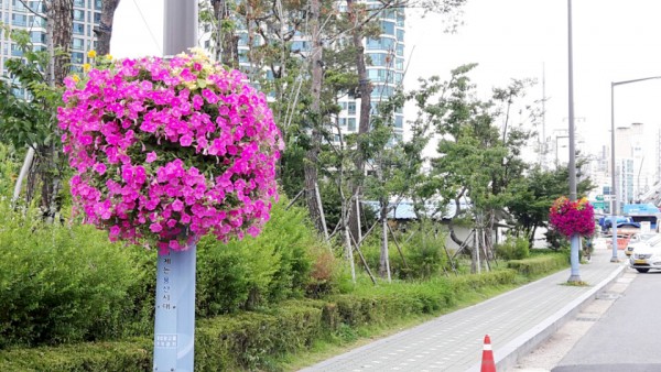 2016년 상반기 용산구청관할 도로에 가로등걸이화분을 설치하였습니다.
