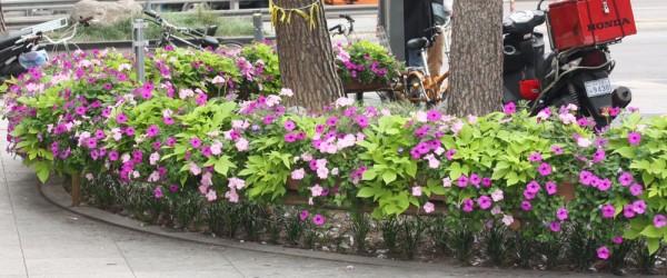 2014년 하반기 강북구청앞 도로조경을 위한 걸이화분을 설치하였습니다.