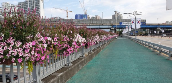 2019년 하반기 구리시 난간걸이화분 설치 > 전용차로난간걸이화분