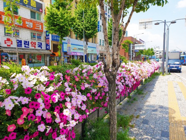 2019년 상반기 마포구 버스전용차로에 난간걸이화분을 설치하였습니다.