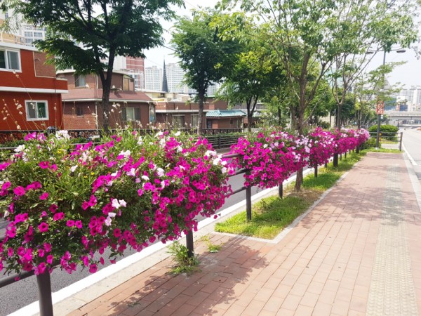 2018년 상반기 성북구 버스정류장과 하늘다리와 바람마당교, 석계교에 난간걸이화분을 설치하였습니다.