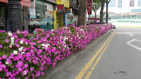 2015년 상반기 부천시 원미구청 관할 부천역 주변 대로변에 난간걸이화분을 설치하였습니다.