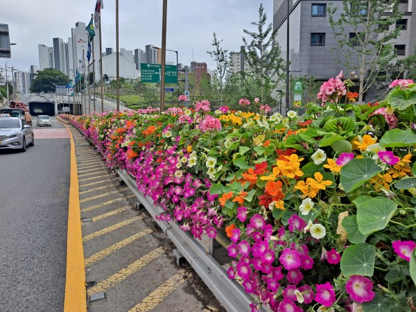 2021년 상반기 영등포구 난간걸이화분 설치 > 전용차로난간걸이화분