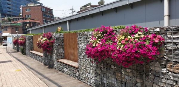 2020년 상반기 용산구 벽에 난간걸이화분을 설치하였습니다.
