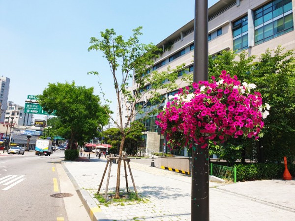 2019년 상반기 성동구에 가로등걸이화분을 설치하였습니다.