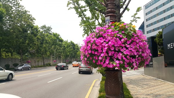 2015년 상반기 용산구청 관할 가로등걸이화분과 꽃사각걸이화분을 설치하였습니다.
