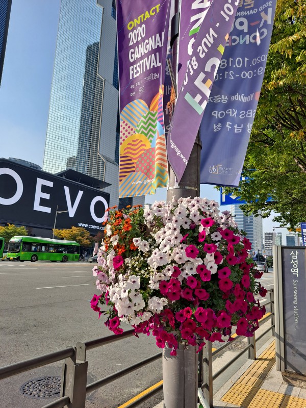 2020년 하반기 강남구에 가로등걸이화분을 설치하였습니다.